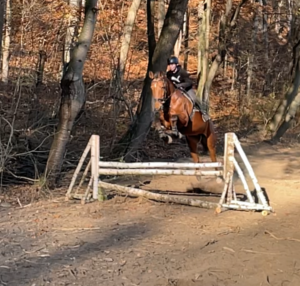 Der Geländeparcour kann nun von ambitionierten Reiter*innen genutzt werden. Angelegt als Vielseitigkeitsparcour stehen unterschiedliche Hindernisse wie Baumstämme, Sprünge, eine Bürste und ein Podest bereit.